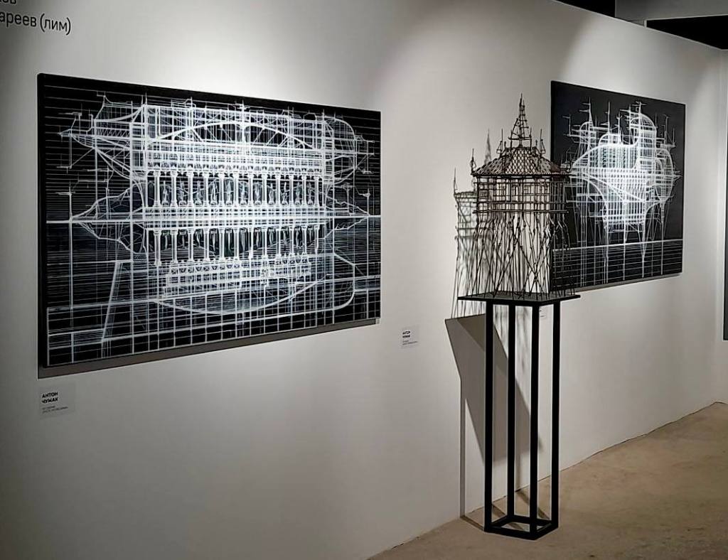 На выставке можно увидеть крупноформатные графические произведения, вдохновленные архитектурными шедеврами прошлого, такими как Пантеон и Фаросский маяк. В некоторых работах автор вводит техногенные элементы, отображая преемственность классической архитектуры и возможности её трансформации в будущем.