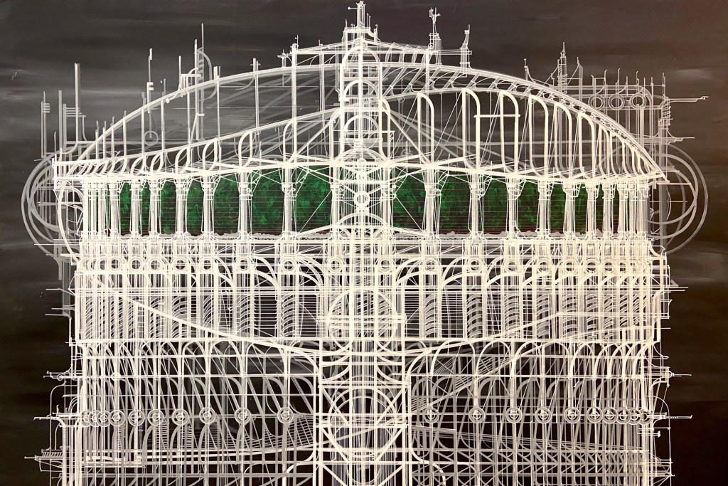 Выставка «Космос. Миражи. Пространства» — воспроизведение мечты в стиле технического рисования, где автор этой космогонии Антон Чумак обращается к умозрительной архитектуре и фантазийной механике. Перед нами образ, возникающий в сознании художника, в его идее построить нечто обитаемое за пределами видимого горизонта, в недрах загадочной и непрерывно манящей Вселенной, где в лабиринтах космического холода можно обустроить оазисы жизни, реализуемые в воображении и в пространствах искусства.